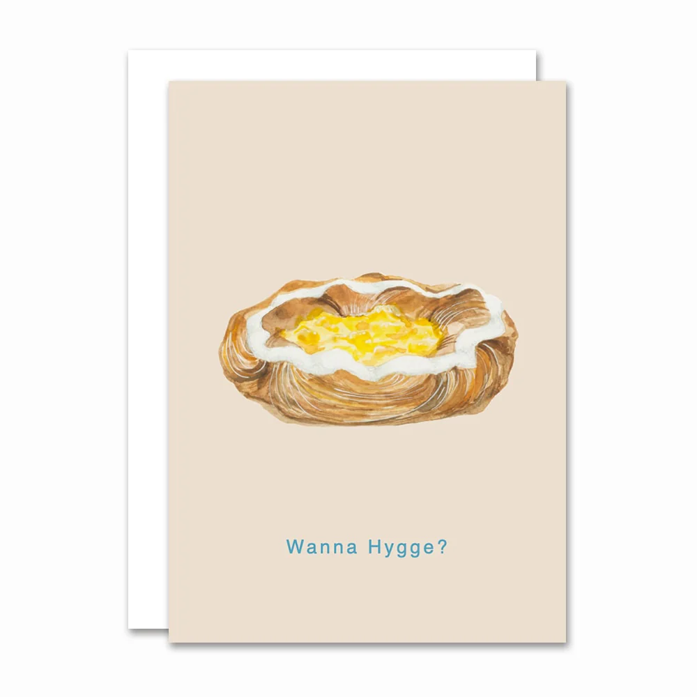 Spandauer på beige bund med teksten: “Wanna hygge?”.