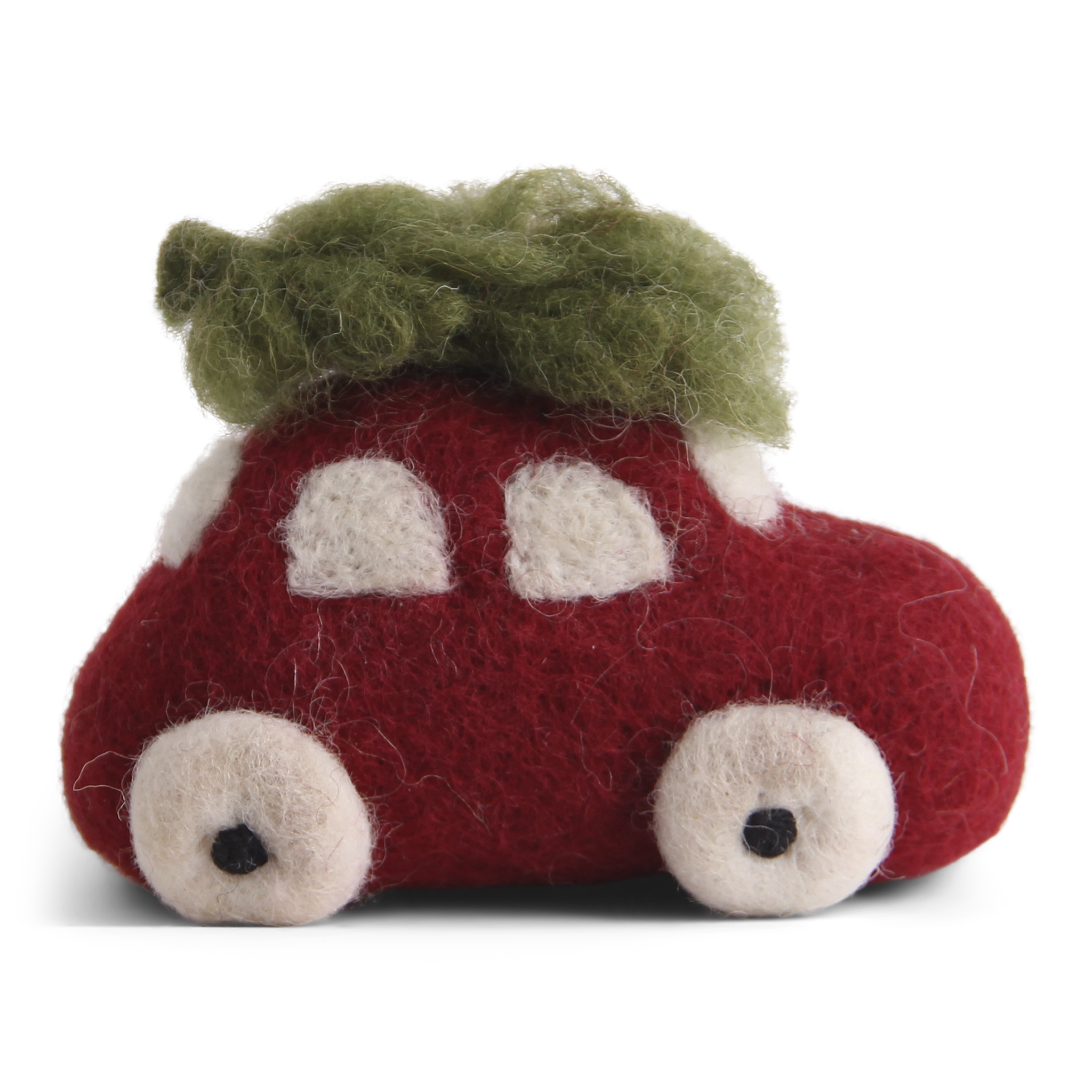 Rød bil med juletræ – 9,5 x 6,5 cm